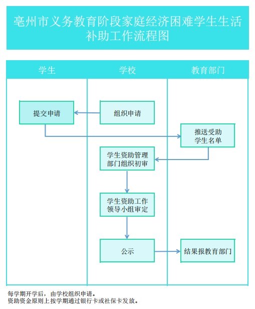 亳州市义务教育阶段家庭经济困难学生生活补助工作流程图