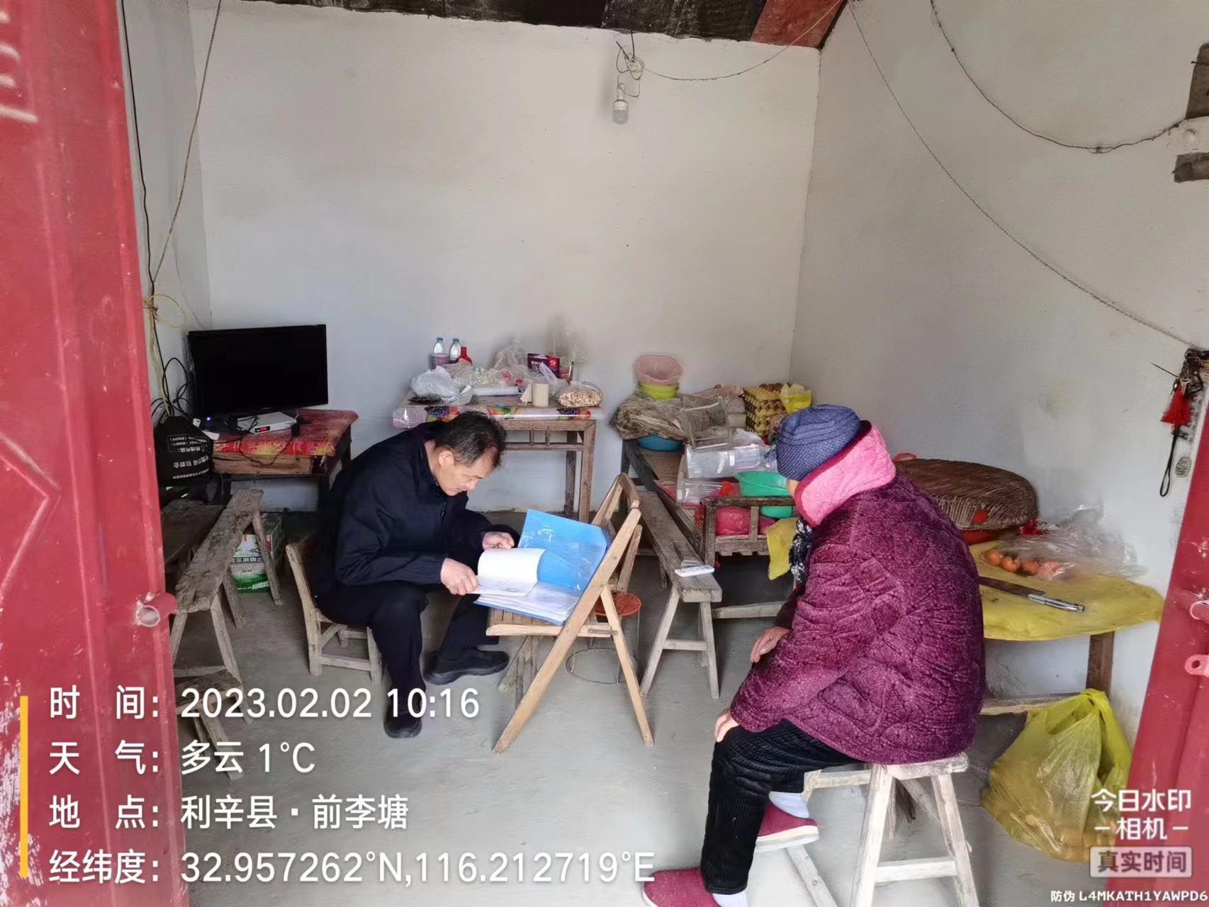 2023年2月2日上午,胡集镇党委书记郭全德到陈刘村陈庄贫困户陈殿民家关心生产生活及政策落实情况
