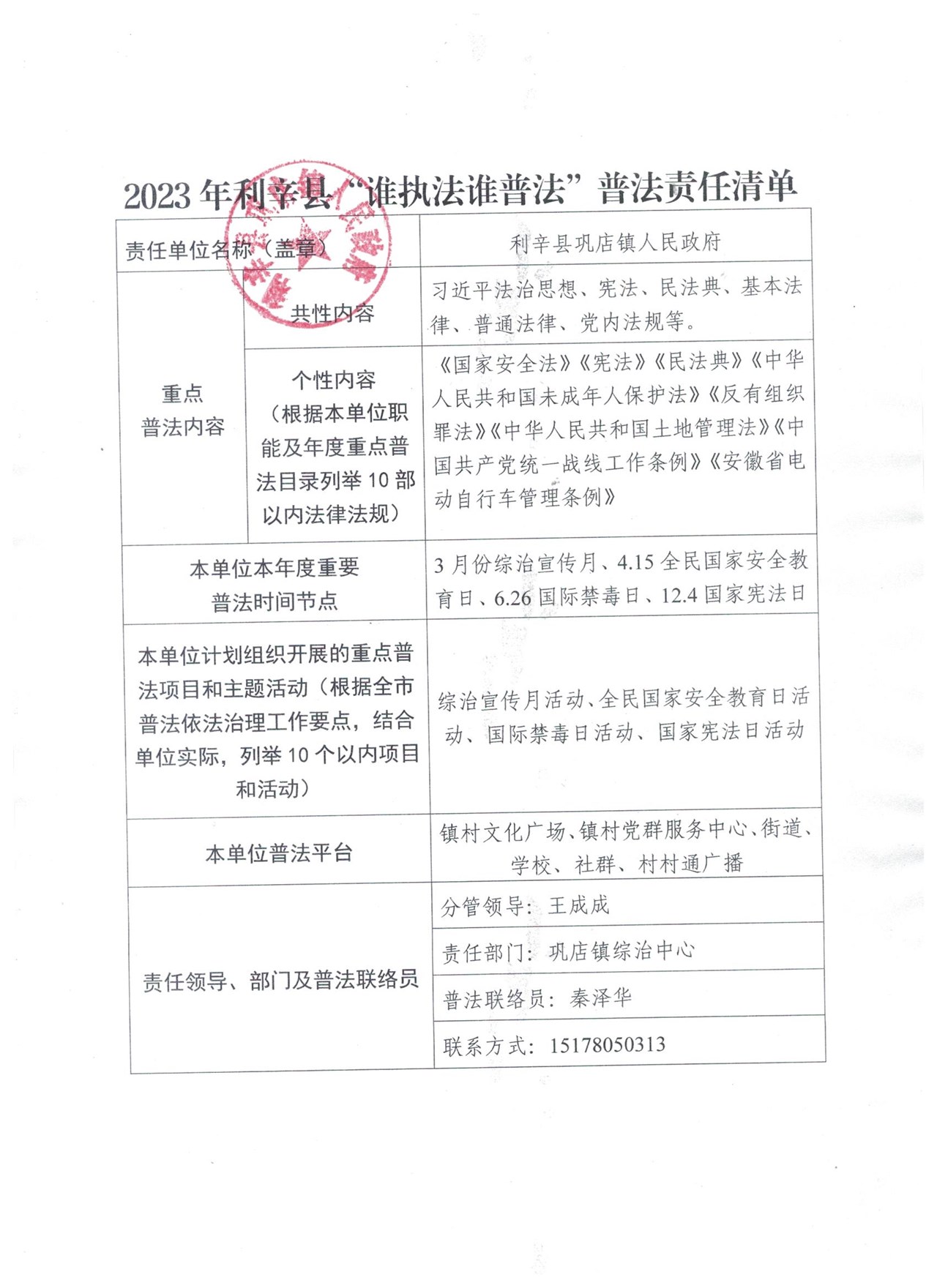 巩店镇“谁执法谁普法”普法责任清单