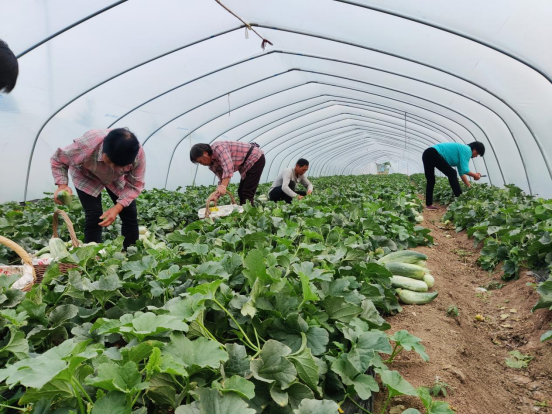 立夏时节,阳光明媚,微风徐徐,在安徽省利辛县胡集镇张桥村李朝永家庭农场果蔬种植基地,成片的蓝色塑料大棚排列有序。棚内瓜藤绿意盎然,长势旺盛。瓜农们正兴高采烈地穿梭其间,忙着采摘瓜果。大棚外的工人们也忙着称重、打包、装车,热火朝天,一派繁忙景象。