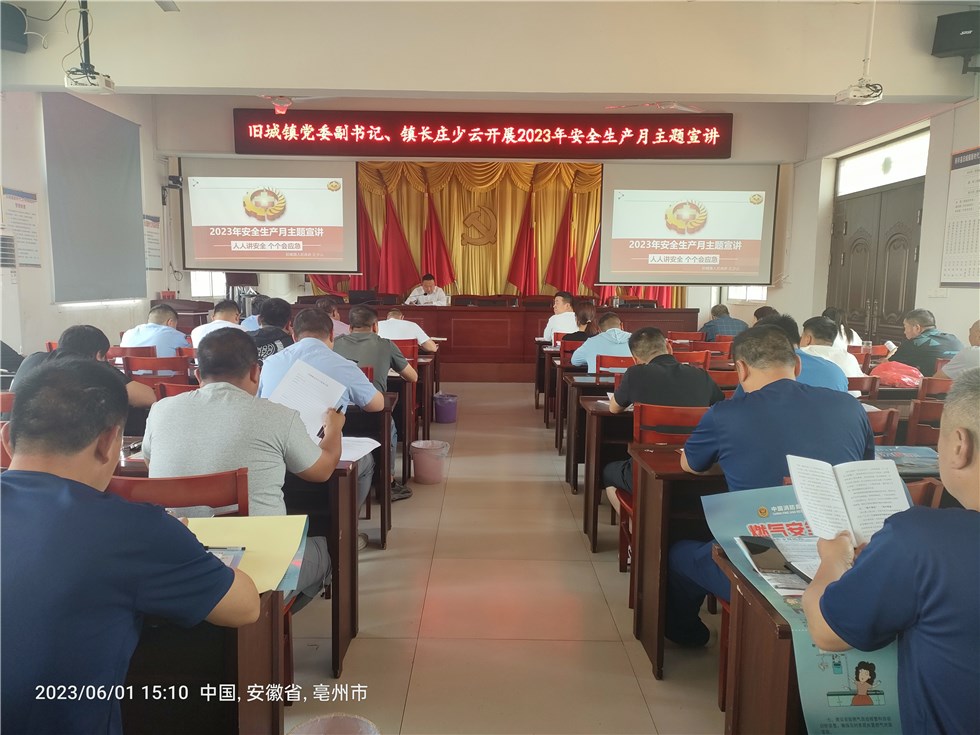 6月1日,旧城镇党委理论学习中心组扩大会议认真学习贯彻习近平总书记关于安全生产重要论述,全面启动“安全生产月”活动,镇党委书记、镇长进行专题安全宣讲。
