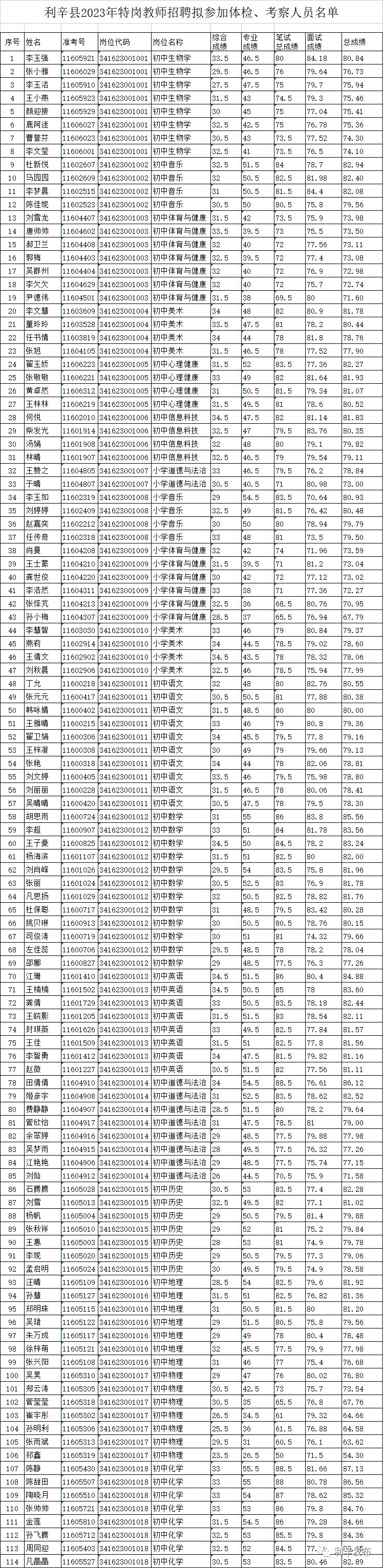附件:1.利辛县2023年特岗教师招聘拟参加体检、考察人员名单