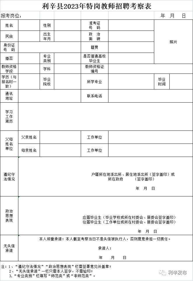 根据《安徽省2023年农村义务教育阶段学校教师特设岗位计划招聘公告》要求,现将我县特岗教师招聘拟参加体检、考察有关事宜公告如下: 按照岗位计划,根据报考人员的总成绩,分学段、按学科,从高分到低分依次等额确定拟参加体检、考察人员名单(若出现总成绩并列的情况,则依次以报考人员的笔试成绩、笔试中专业知识成绩为依据,从高分到低分确定,具体人员名单见附件1)。 1.参加体检人员要在规定的体检时间当日8∶00-9:30空腹到达利辛县中医院体检中心。 2.体检时携带近期免冠小二寸照片1张,凭本人有效居民身份证、笔试准考证,领取并填写《体检表》,粘贴照片,审查后加盖公章,参加体检(不需办卡缴费)。 3.体检标准:参照《安徽省教师资格申请人员体检标准及办法》和省教育厅《关于进一步做好教师资格认定体检工作的通知》执行,体检工作结束后,由医院出具“合格”或“不合格”的结论性意见,并加盖单位体检专用公章。 为顺利开展考察工作,体检当天将档案交体检中心二楼工作人员处。档案在利辛县人才交流中心的需提供存档证明;档案在利辛县外的可从安徽公共招聘网申领《调档函》或到利辛县教育局四楼人事股领取《调档函》,并及时到档案所在地调档。档案所在地如不允许考生自带档案,考生可以通过邮寄(机要)方式邮寄档案(邮寄地址及收件:利辛县城关镇港口路教育局一楼档案室,联系电话:0558-8853872),体检当天需提供档案或档案在寄证明。 考生体检时须提交《利辛县2023年特岗教师招聘考察表》(下载附件2,A4纸打印)。《考察表》内容填写要完整、真实准确,不得弄虚作假,不得空栏漏项;印章签字要齐全。“遵纪守法情况”、“政治思想表现”一栏必须签字验印且有明确的结论,如填写“该同志遵纪守法,无违法犯罪行为”等,“无失信承诺”一栏只需本人签字,不需验印,否则责任自负。 0558-8702666县纪委监委派驻农业农村局纪检组