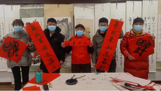 新时代文明实践志愿者们加墨、裁纸、晾晒,忙得不亦乐乎,散发墨香、寓意吉祥的春联、福字相继而生,浓浓的年味和喜庆欢乐的氛围充满了现场,提前点燃了春节的年味,弘扬了中华优秀传统文化。