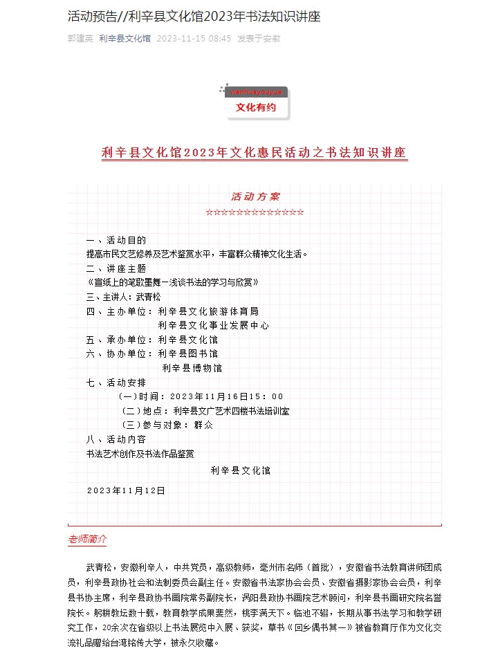 活动预告//利辛县文化馆2023年书法知识讲座