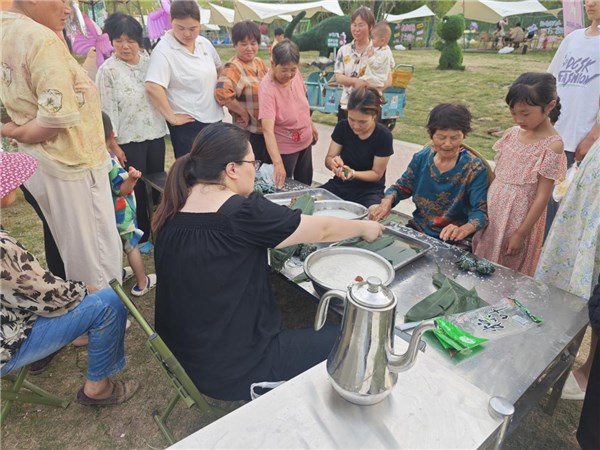 2024年6月9日,马店孜镇双沟社区在游孜有味露营地,开展“我在新时代文明实践站过端午” 主题民俗活动,辖区居民代表参加活动,活动中,大家聚一起拉家常,分享包粽子技巧。