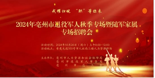 2024年亳州市退役军人秋季专场暨随军家属专场招聘会