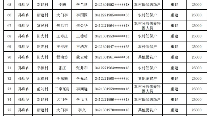 利辛县2025年第二批农村危房改造资金拨付公示(含孙庙乡)