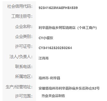 孙庙乡2025年3-4月小餐饮、食品摊贩备案基本信息