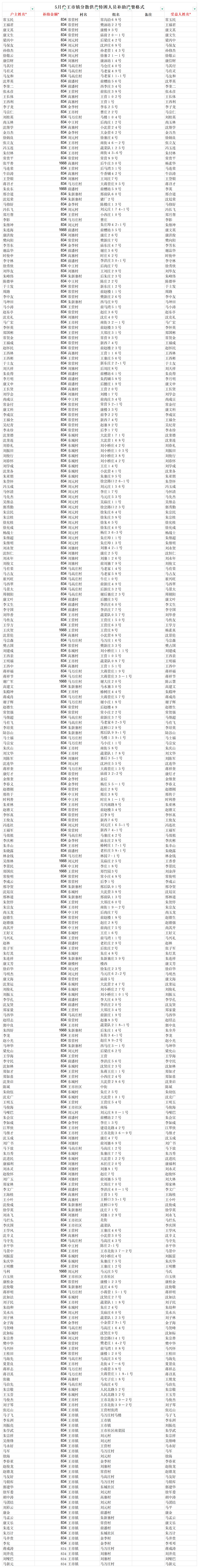 2025年5月王市镇分散供养特困人员补助清册
