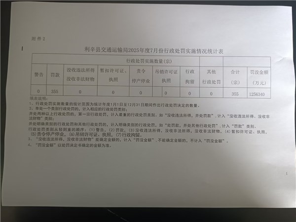 利辛县交通运输局2025年度7月份行政处罚实施情况统计表