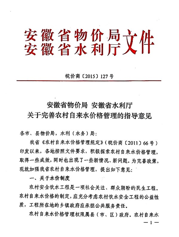 | 名称: | 其他解读安徽省物价局安徽省水利厅《关于完善农村自来水价格管理的指导意见》 |