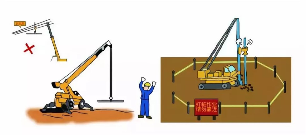 5、吊车距离高压线,线路电压小于1KV时,垂直方向和水平方向的距离至少在1.5米以上。