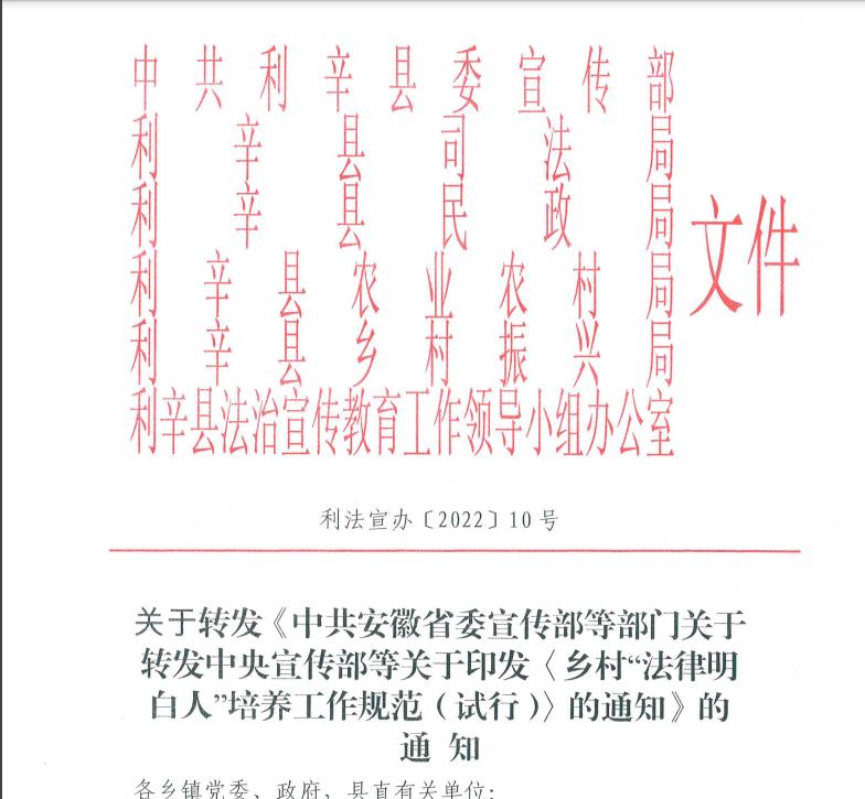 | 文号: | 利法宣办〔2022〕10号 | ||