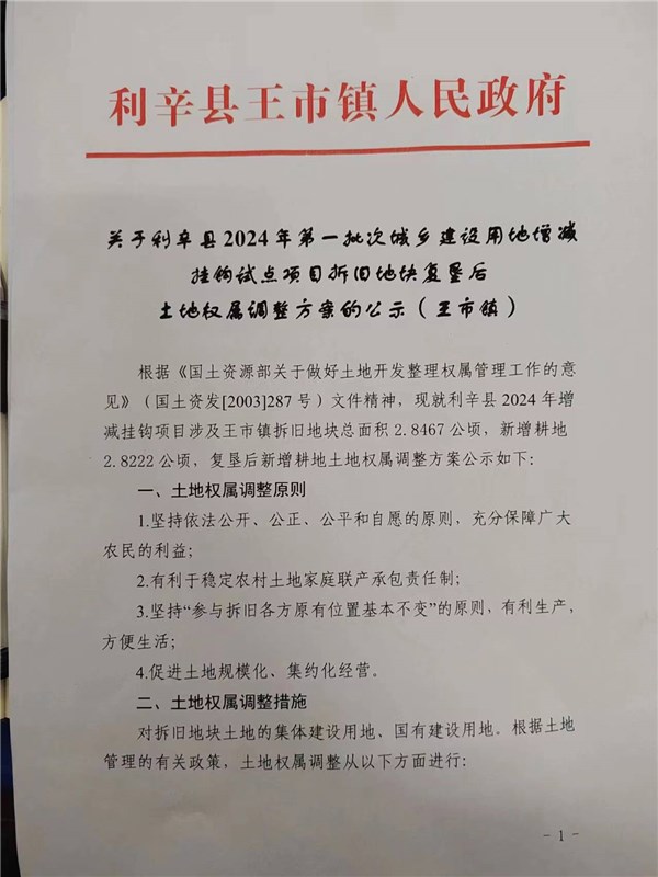 | 名称: | 关于利辛县2024年第一批次城乡建设用地增减挂钩试点项目拆旧地块复垦后土地权属调整方案的公示(王市镇) |