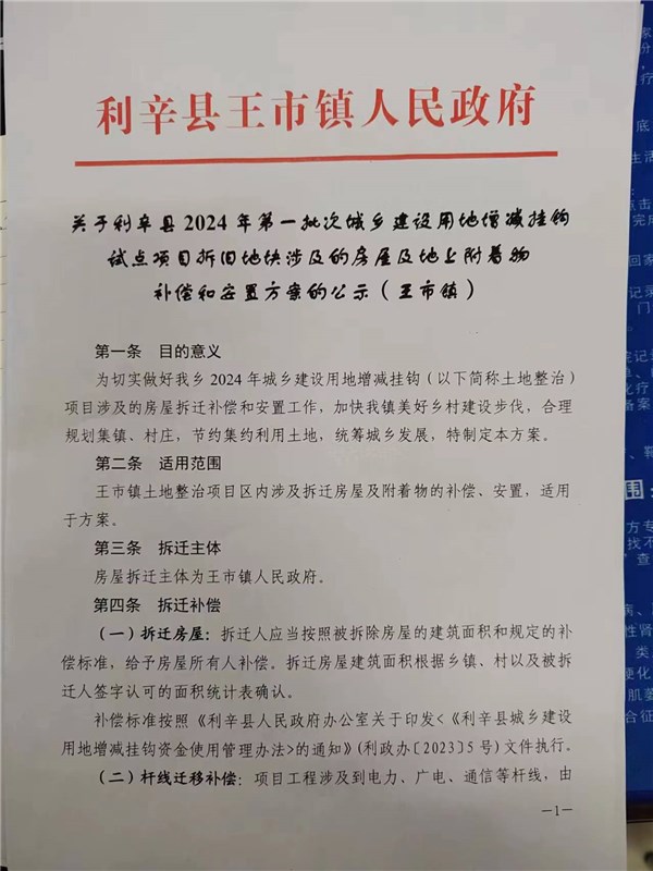 | 名称: | 关于利辛县2024年第一批次城乡建设用地增减挂钩试点项目拆旧地块涉及的房屋及地上附着物补偿和安置方案的公示(王市镇) | 文号: | 无 |