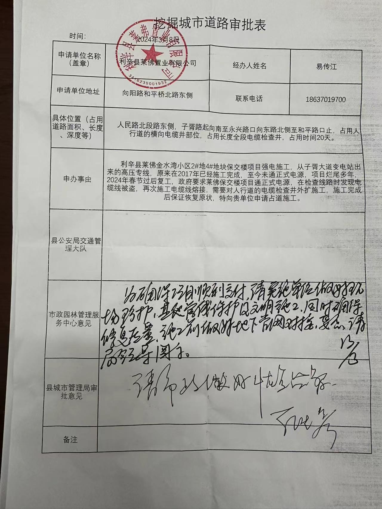 | 名称: | 挖掘城市道路审批表 | 文号: | 无 |