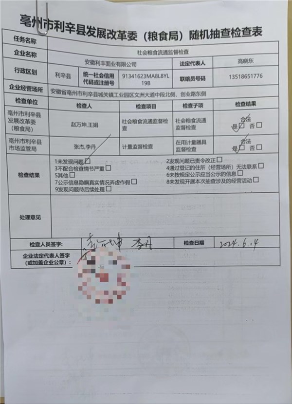 | 名称: | 对安徽利丰面业有限公司的随机抽查 |