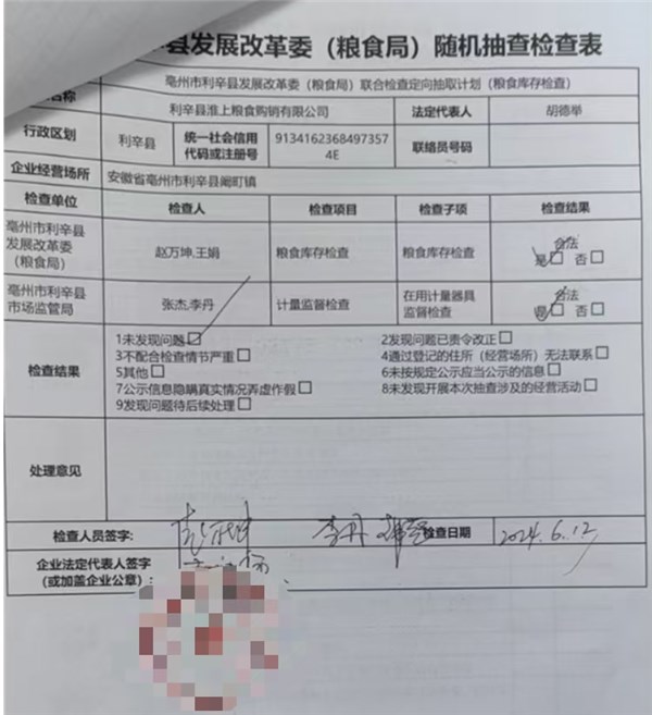 | 名称: | 对利辛县淮上粮食购销有限公司随机抽查 |
