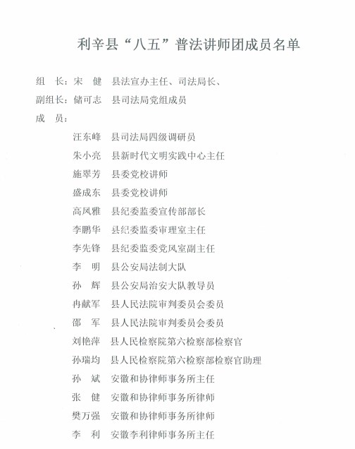 | 名称: | 【普法讲师团】利辛县普法讲师团 |