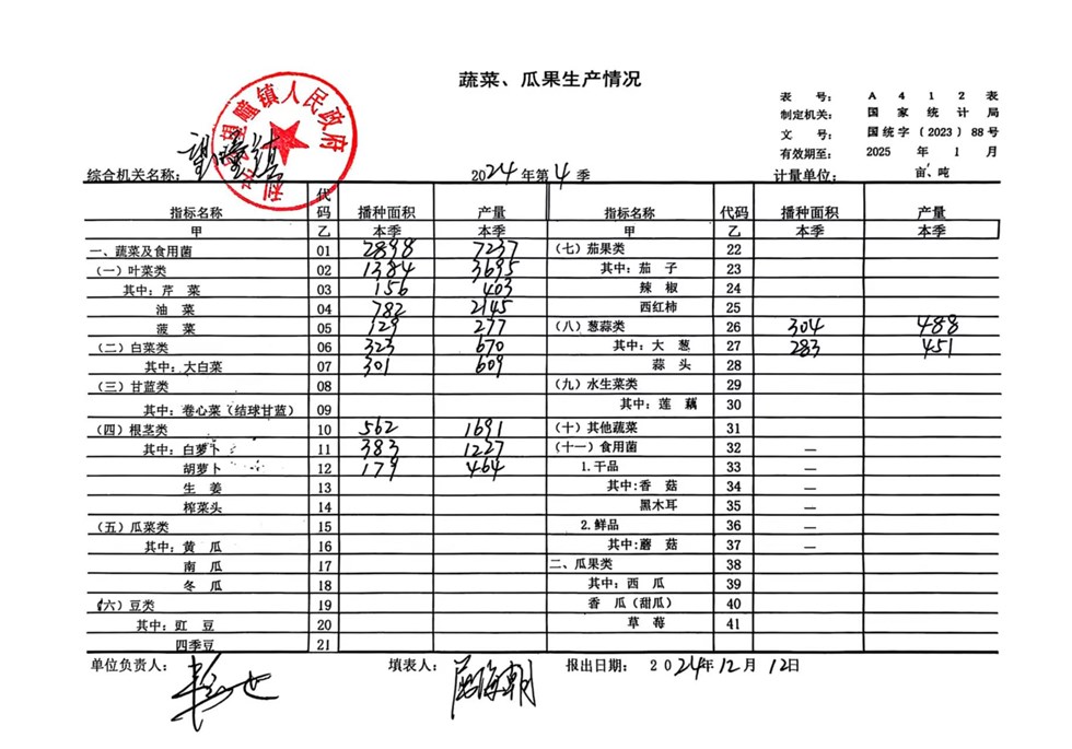 | 名称: | 望疃镇2024年第4季度蔬菜瓜果生产统计情况 | 文号: | 无 |