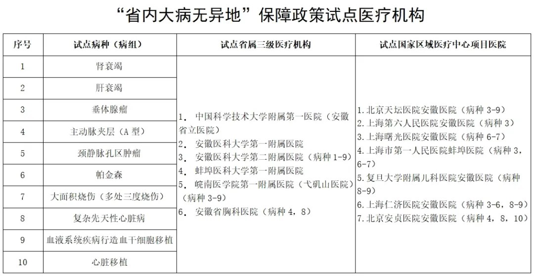 | 名称: | 【转载】安徽明确!7月1日起执行!《关于扩大“省内大病无异地”试点病种的通知》 |