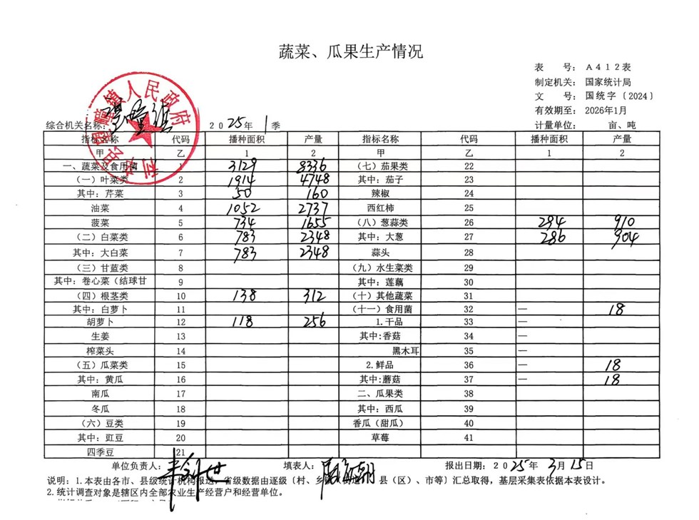 | 名称: | 望疃镇2025年第1季度蔬菜瓜果生产统计情况 | 文号: | 无 |
