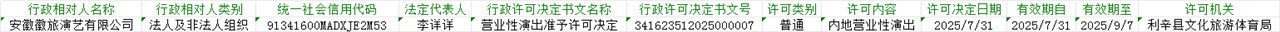 | 名称: | 安徽徽旅演艺有限公司 营业性演出行政许可公示 |