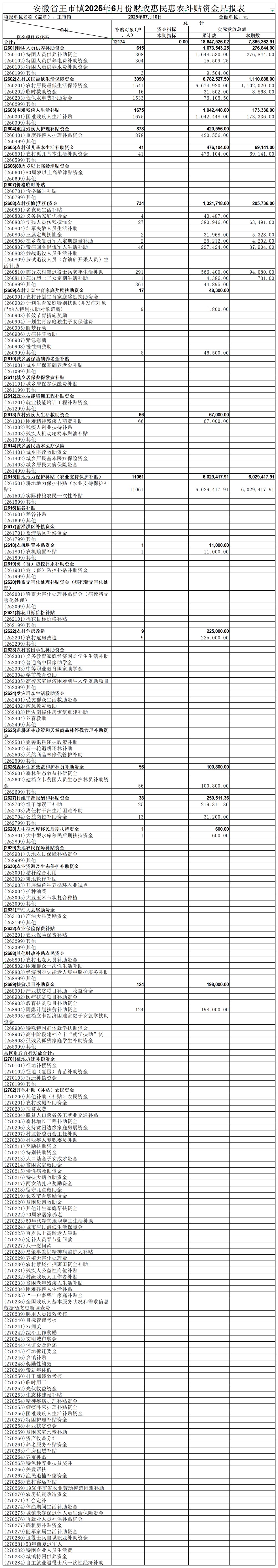 | 名称: | 2025年06月份财政惠民惠农补贴资金月报表 | 文号: | 无 |