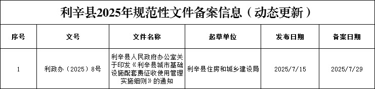 | 名称: | 利辛县2025年规范性文件备案信息(动态更新) | 文号: | 无 |