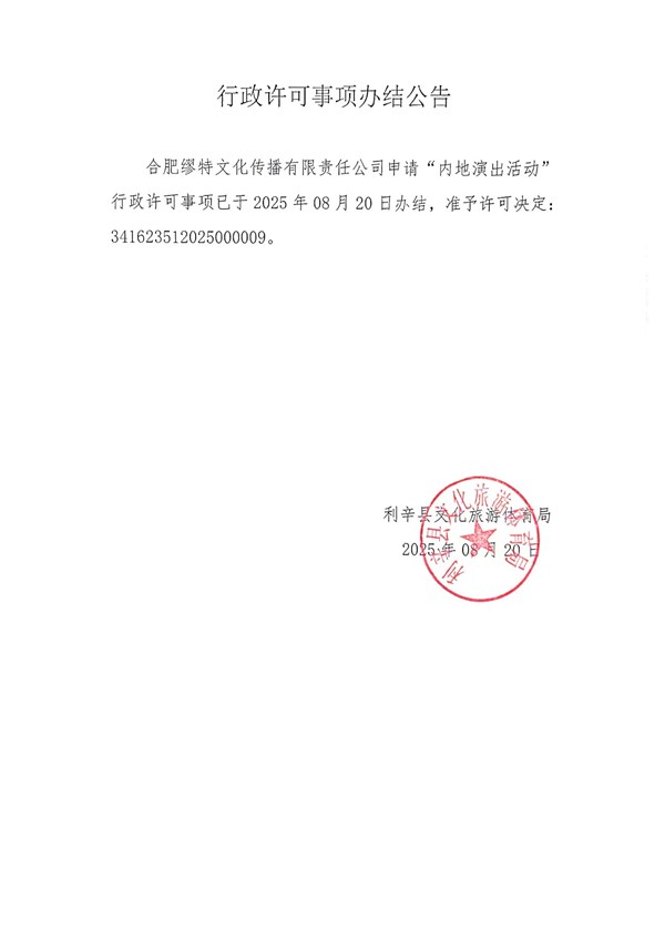 | 索引号: | 11341623MB0U19825Q/202508-00002 | 组配分类: | 营业性演出审批 |