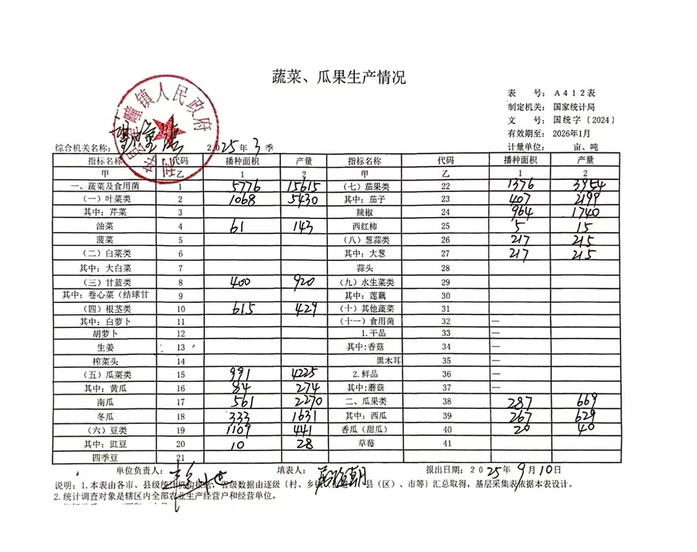 | 名称: | 望疃镇2025年第3季度蔬菜瓜果生产统计情况 | 文号: | 无 |