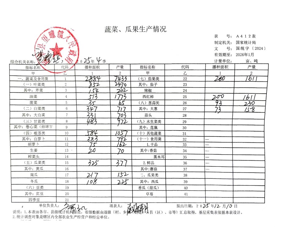 | 名称: | 望疃镇2025年第4季度蔬菜瓜果生产统计情况 |