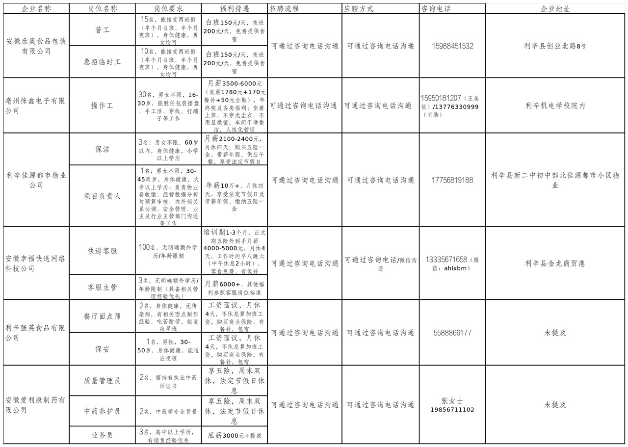 【企业之窗】利辛这些企业正在招聘
