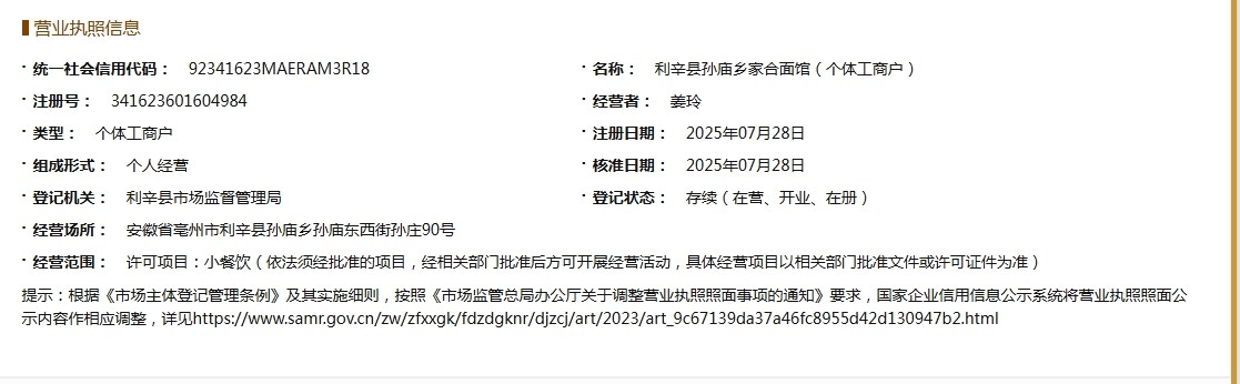 孙庙乡2025年8-9月小餐饮、食品摊贩备案基本信息