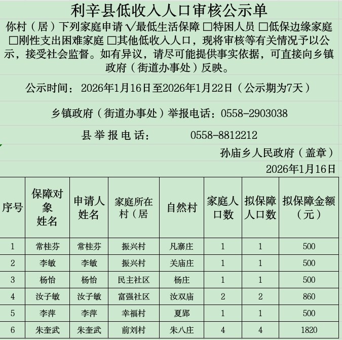 孙庙乡农村低保每月新增公示.xlsx 【11.9 KB】