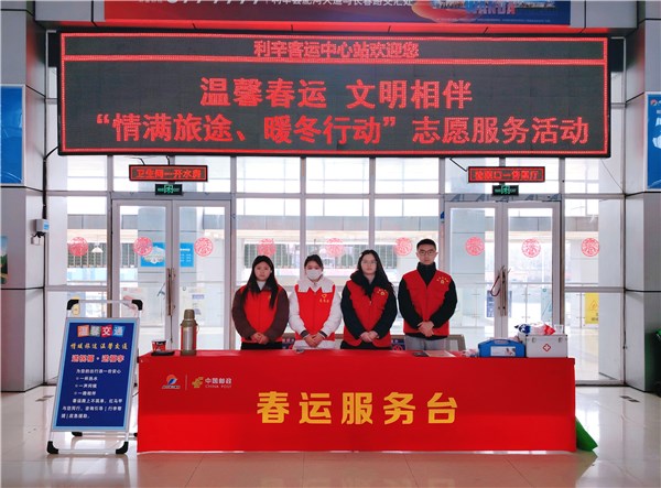 春运期间,利辛客运中心站化身温暖港湾,公司在站内设立“春运服务台”提供暖心服务,布置公益宣传、帮扶务工创业人员,志愿者同步开展引导咨询等服务;同时,全体工作人员与志愿者坚守岗位、履职尽责,重点关注老弱病残孕等特殊旅客,安排专人全程贴心帮扶、护送上车,以严谨态度、细致服务筑牢旅客归途安全防线,用精准关怀传递企业温情。