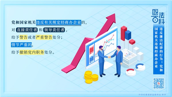 《中国共产党纪律处分条例》第一百零八条规定,党和国家机关违反有关规定经商办企业的,对直接责任者和领导责任者,给予警告或者严重警告处分;情节严重的,给予撤销党内职务处分。