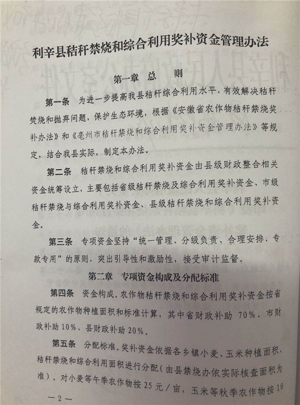 | 名称: | 利辛县秸秆禁烧和综合利用奖补资金管理办法 |