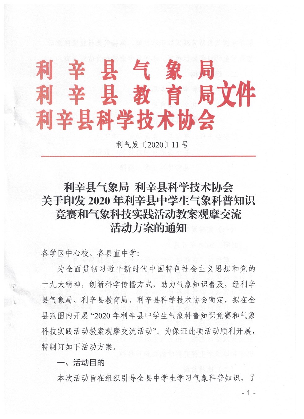 | 名称: | 2020年安徽省中学生气象知识竞赛决赛和气象科技实践活动教案观摩交流活动 | 文号: | 无 |