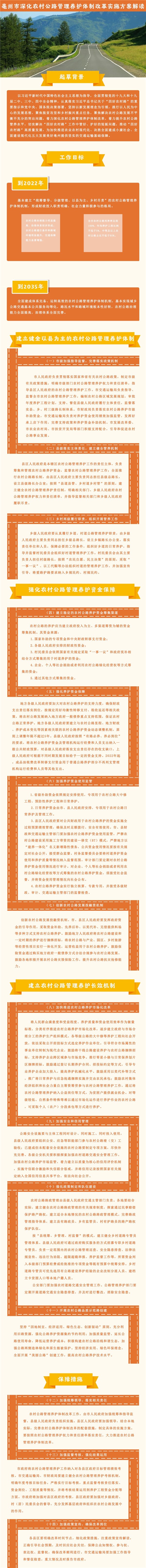| 名称: | 图解《亳州市人民政府办公室关于印发亳州市深化农村公路管理养护体制改革实施方案的通知》 |
