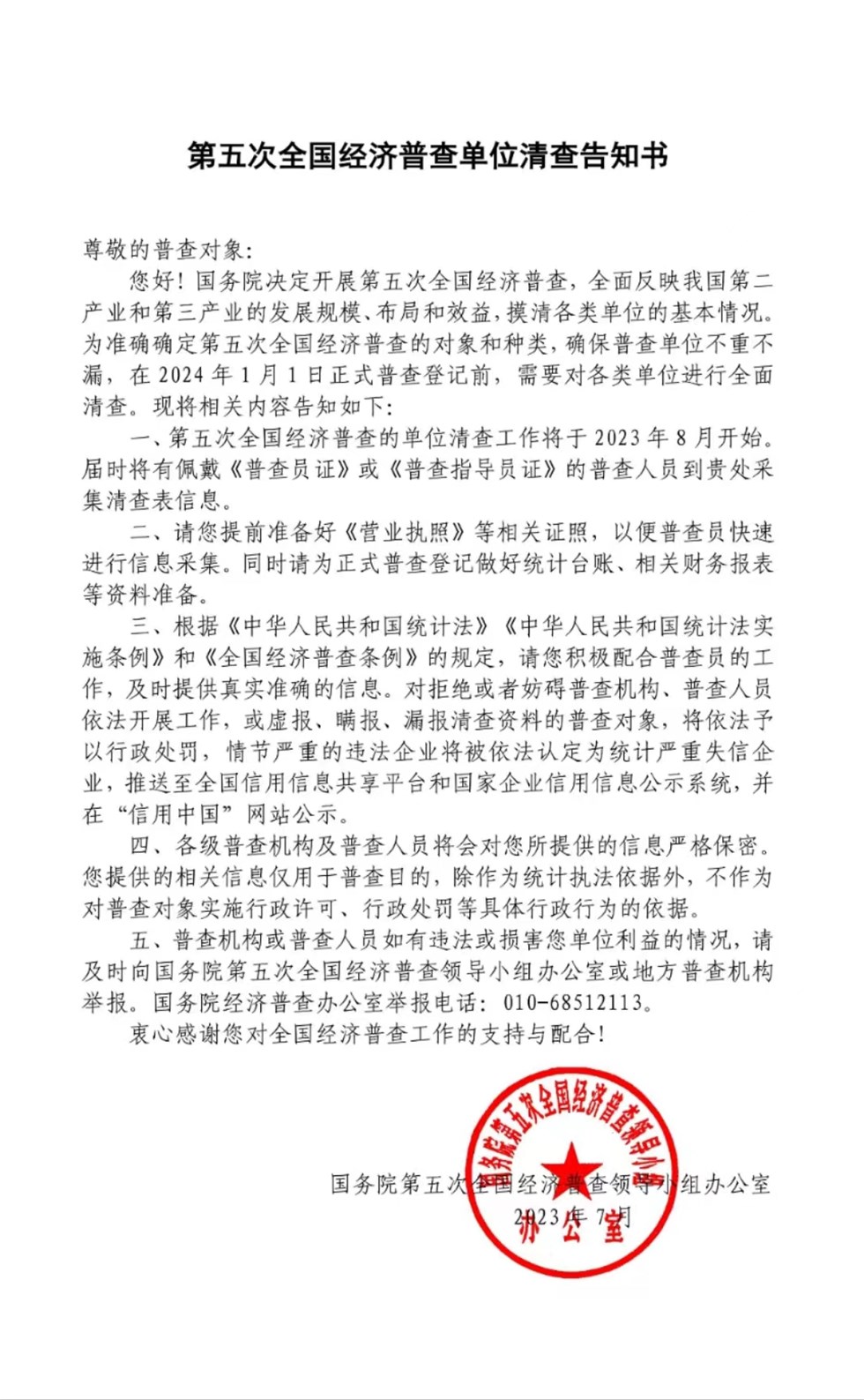 | 名称: | 利辛县经开区转发《第五次全国经济普查单位清查告知书》 | ||