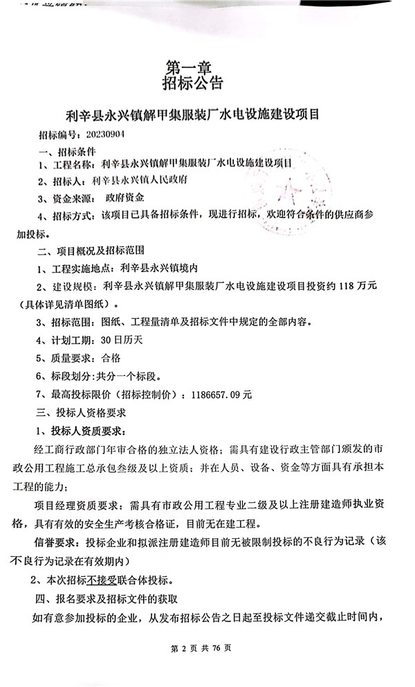 | 名称: | 利辛县永兴镇解甲集服装厂水电设施建设项目招标公告 |