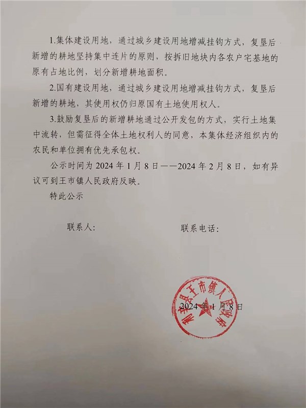 | 名称: | 关于利辛县2024年第一批次城乡建设用地增减挂钩试点项目拆旧地块复垦后土地权属调整方案的公示(王市镇) |
