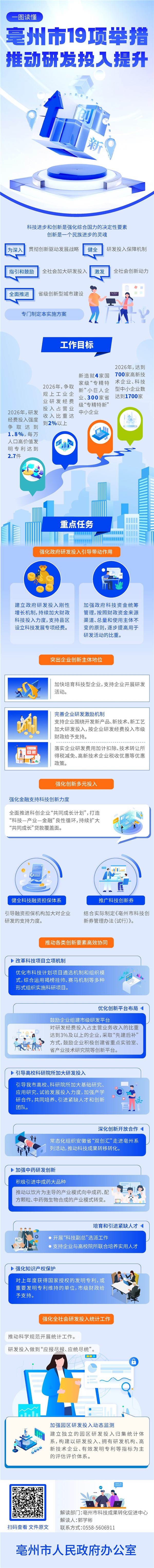 | 名称: | 一图读懂《亳州市人民政府办公室关于印发亳州市研发投入提升行动实施方案的通知》——亳州市19项举措推动研发投入提升 |