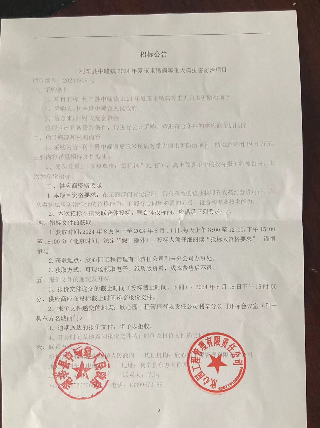 | 名称: | 利辛县中疃镇2024年夏玉米锈病等重大病虫害防治项目招标公告 | 文号: | 无 |