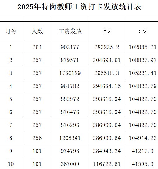 | 名称: | 利辛县2025年特岗教师工资、社保、医保发放情况(1-10月) |