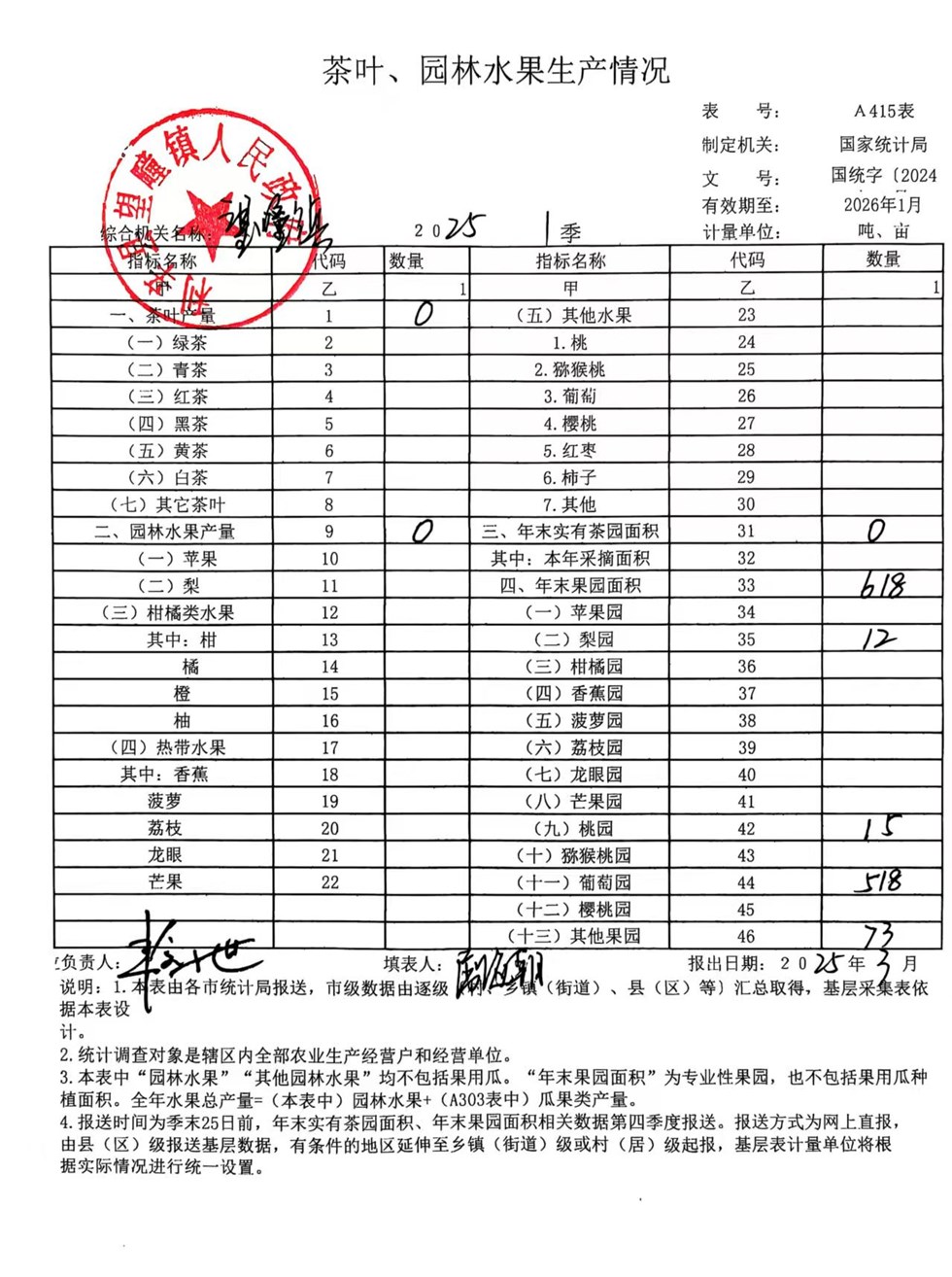 | 名称: | 望疃镇2025年第1季度茶叶园林水果生产统计情况 |