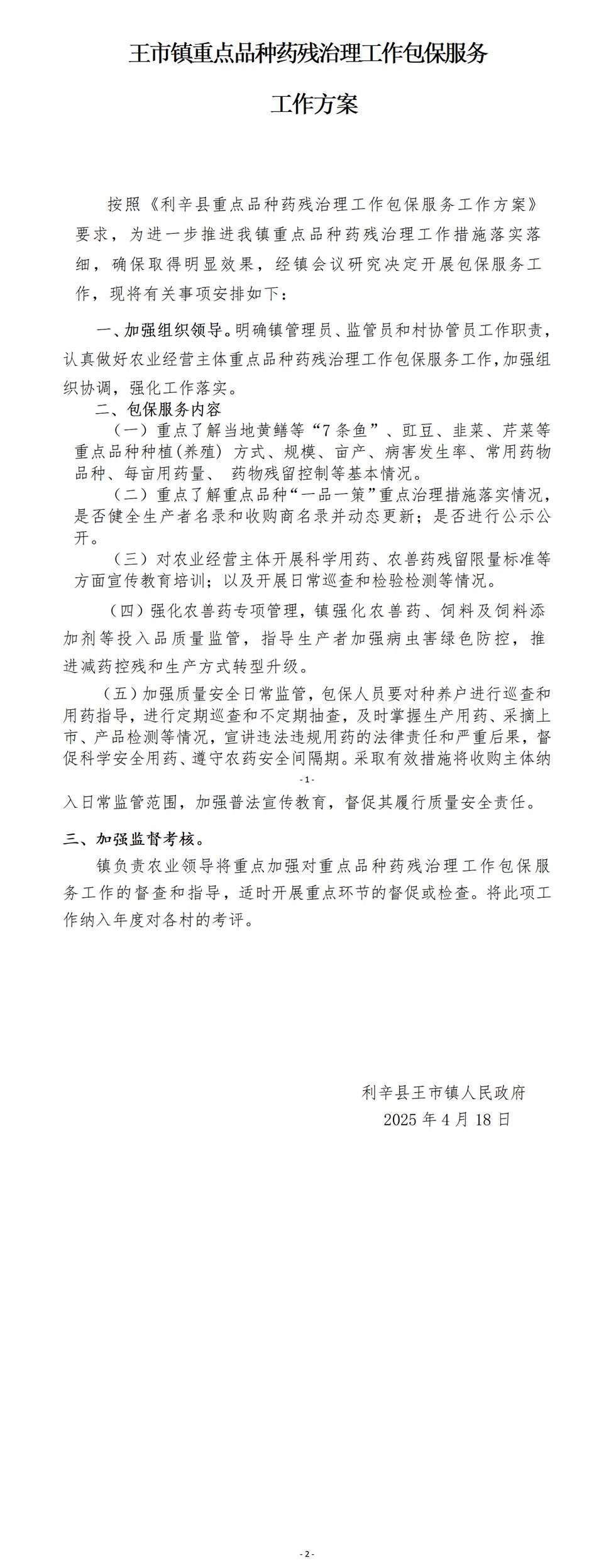 | 名称: | 王市镇重点品种药残治理工作包保服务工作方案 |
