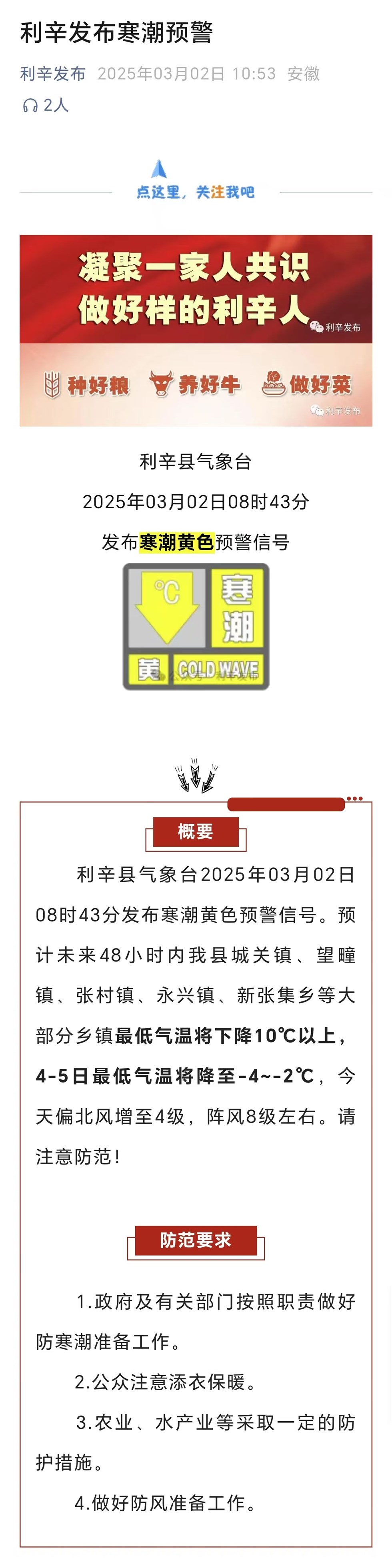 | 名称: | 【天气预警】利辛发布寒潮预警 |